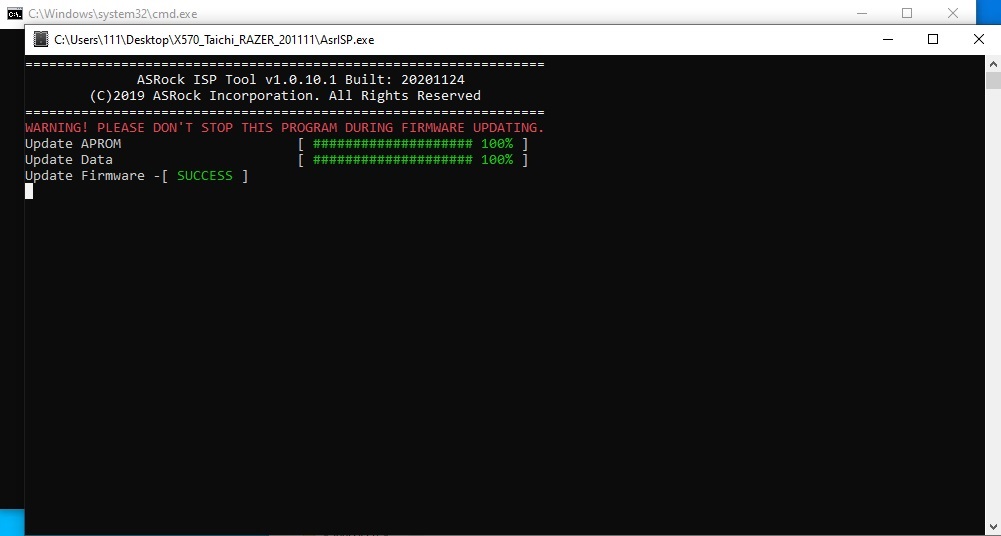 - After the message “update firmware SUCCESS” is shown please restart your system.